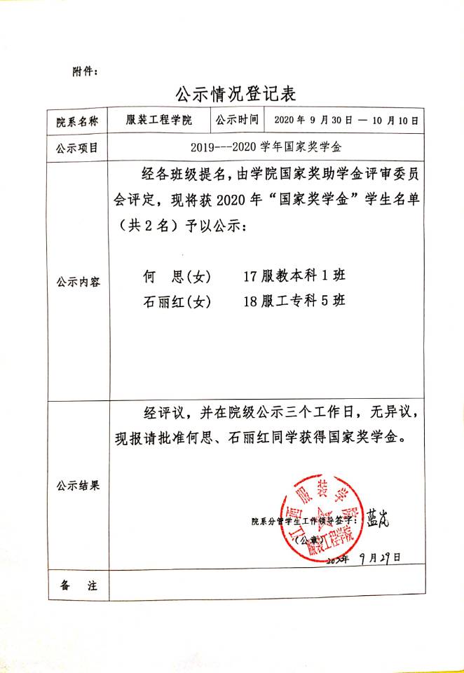 BB贝博艾弗森2019-2020学年国家奖学金公示如下: