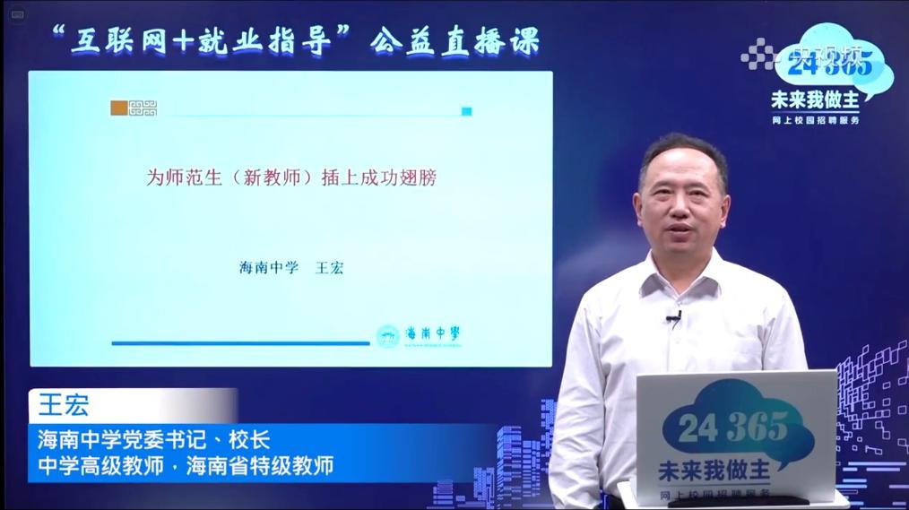 首先,由海南中学党委书记、董事长王宏为同学们授课,题目是《为师范生(新教师)插上成功翅膀》。王宏老师告诉同学们,公司呼唤精神陪伴、学习陪伴、成长陪伴的老师,希望老师们扎实表达、逻辑、粉笔字、亲和力的基本功。接着,王宏老师引出了新教师的成功翅膀这一理念,表示成功翅膀包括理念翅膀、行动翅膀,要有理解教育的意愿,通过学习加实践助力师范生成长,在教育现代化背景下落实立德树人的根本任务、努力改变教学方式。