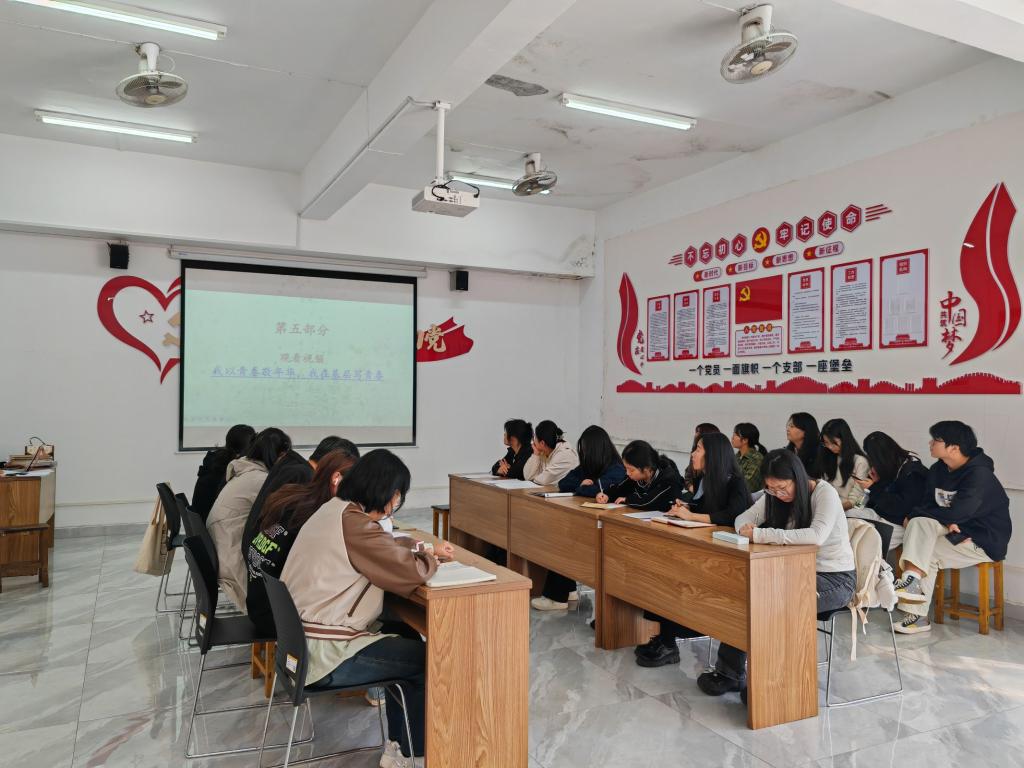 会议第五项,共同观看视频——《我以青春敬年华,我在基层写青春》。