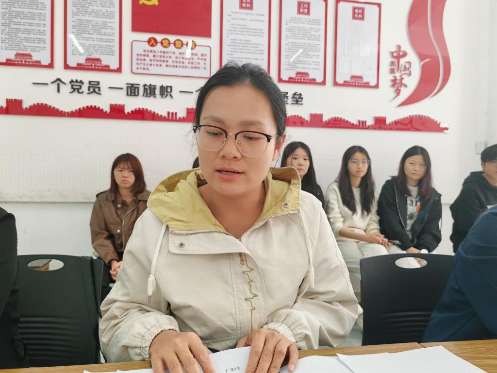 会议第三项,由洪婷领学《“五史”教育培育“四有”新人的价值意蕴》。在领学中,她指出,“五史” 教育,是新时代青年提升使命感与责任感的重要途径。学史明理,坚定理想信念,做有理想的爱国者。通过 “五史” 教育,我们要能领会马克思主义的科学性和真理性,认识社会主义制度的优势与活力,理解中国共产党人的崇高目标与坚定信念,不断增强担负时代责任的信仰、决心与使命,激发担当精神,成为勇于担负时代责任的传承者。