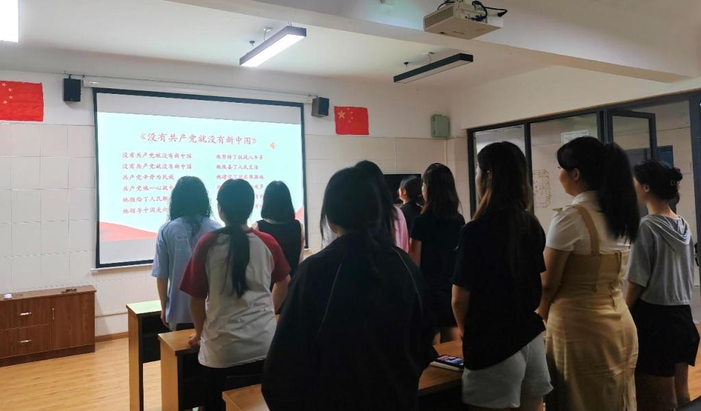 会议第一项,全体起立,齐唱《没有共产党,就没有新中国》。