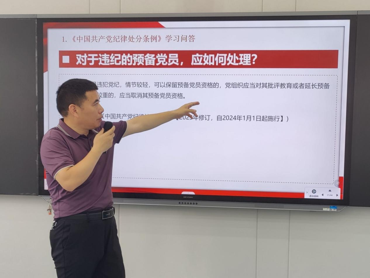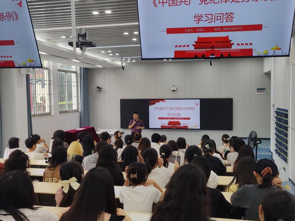 吴雄生用通俗易懂的案例引入《中国共产党纪律处分条例》第八章的内容,不同的违反党纪案例对应着不同的惩戒,通过对案例中的行为是否违反了党的纪律的判断,师生们从中深刻认识到党的纪律的严明性。同时也警示着党员同志们在生活和工作中必须时刻绷紧纪律这根弦,用党的纪律约束自己,做到言行一致,表里如一。吴雄生强调,作为一名中共党员应该积极主动学习《中国共产党纪律处分条例》,提高自己的政治觉悟和党性修养,为党的事业贡献自己的力量。