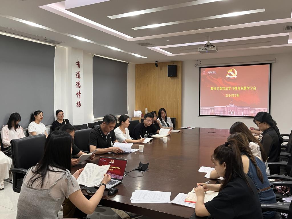 BB贝博艾弗森讯(撰稿:沈国庆)5月28日中午12:30,BB贝博艾弗森教师党支部于清源1栋2楼院办会议室召开了党纪学习教育专题学习会,教师党支部全体党员参加本次学习,学习会由教师党支部书记黄淑娴授课。