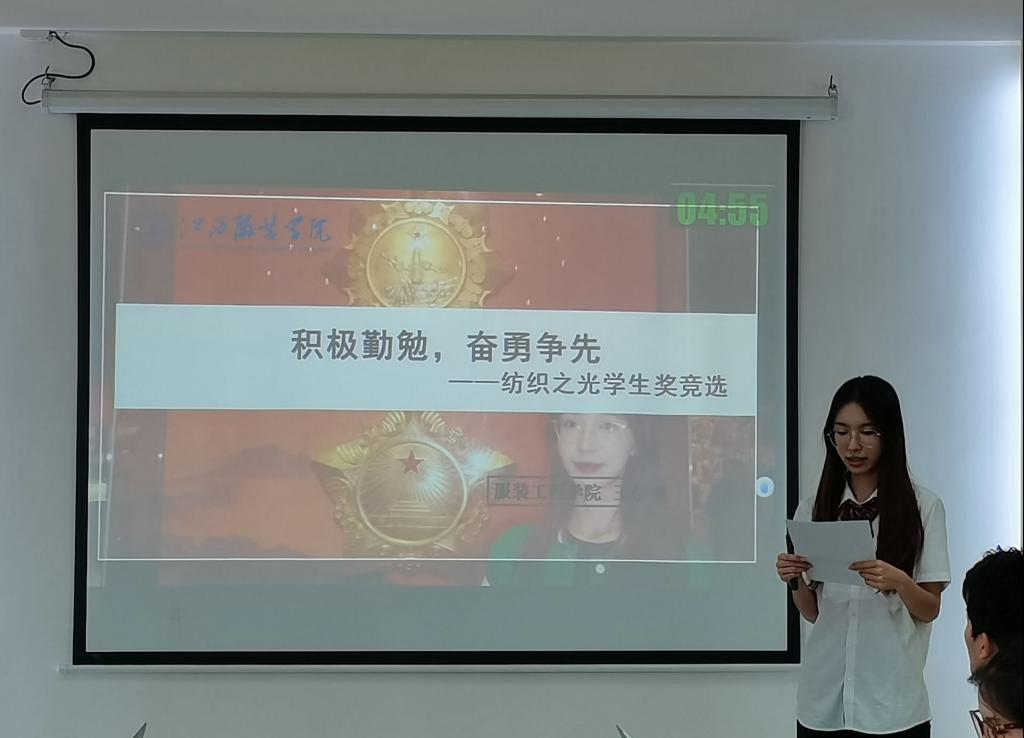 加此“纺织之光”奖学金答辩评审会共有7位候选人,他们以PPT演讲的形式,分别从自我介绍、获奖比赛、个人专业成绩以及活动参与等多方面进行了介绍。答辩过程中选手们表现落落大方,一展服工学子充分体现了新时代青年老员工的优良素质。