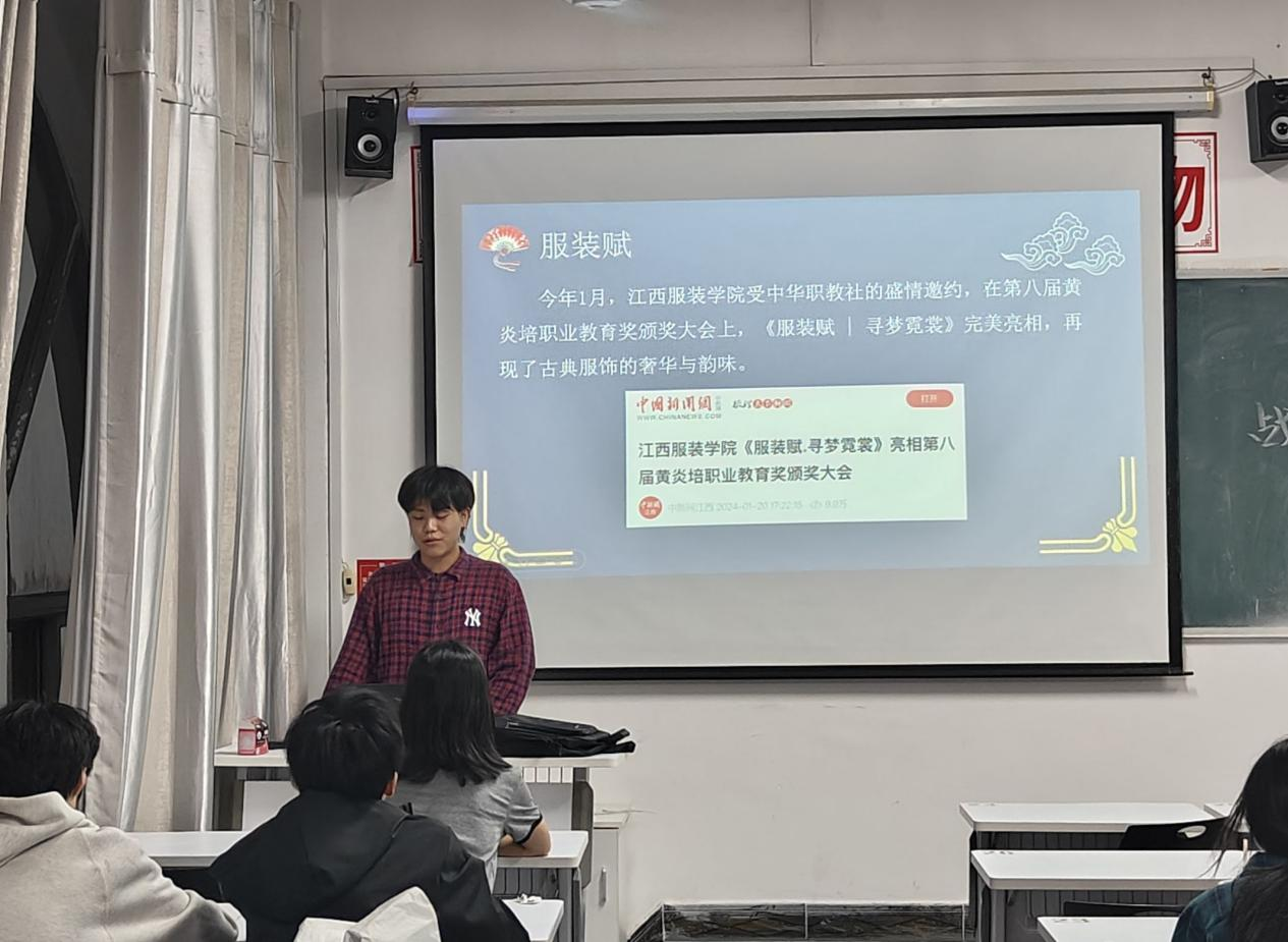 大一各班级围绕“国潮澎湃,青年有为”的主题召开。班长们以我国本土知名品牌对中国元素的运用以及国潮的不断兴起为例,向同学们解释了文化自信的内涵。通过公司自主创作的大型音乐舞台剧《服装赋》,来展示公司对服饰文化的传承与复兴。此次班会,同学们对中华优秀传统文化发自内心地崇敬、从灵魂深处认同,增强对中华优秀传统文化的传承,提高文化自信和民族自豪感。