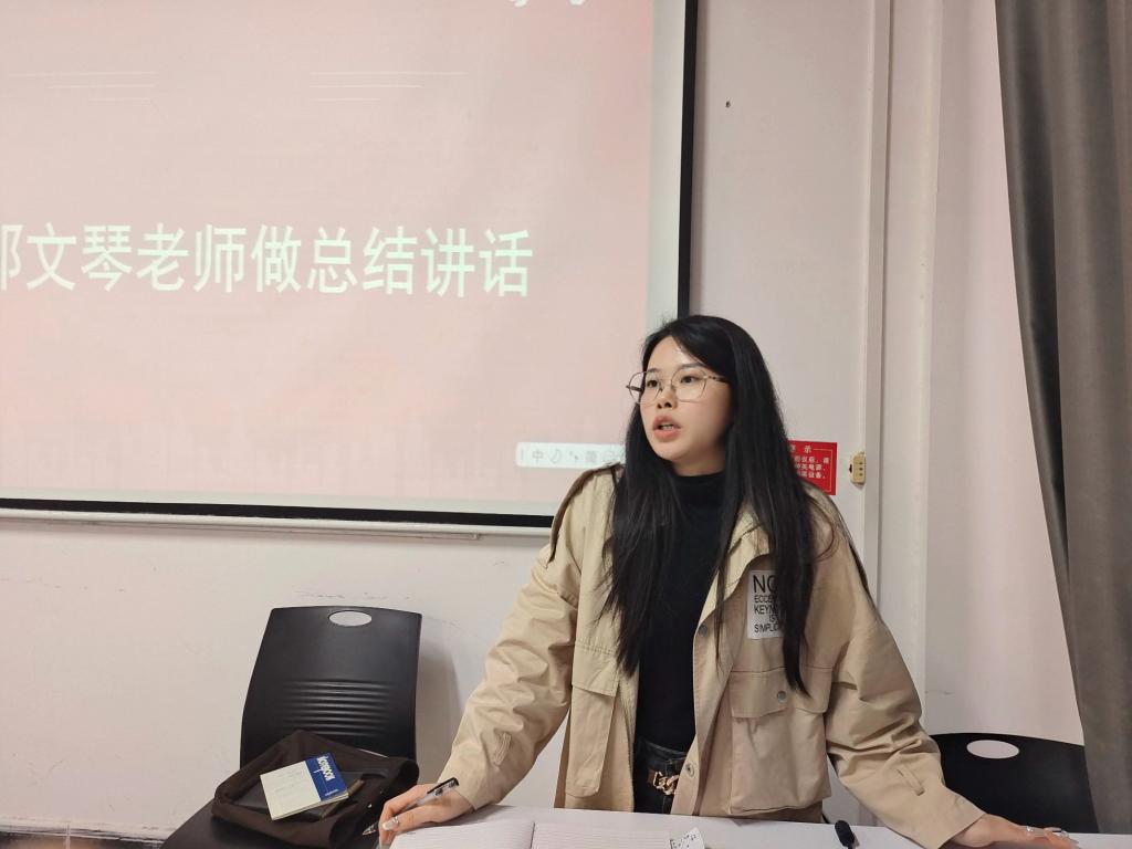 会议最后,邓文琴对此次例会做了总结邓文琴提出“学会倾听”是每位心理委员需具备的良好素质当遇到同学阐述所遇难题和内心困惑有一定困难时,心理委员可以从他们感兴趣的点入手,探寻其话语背后的想法。邓文琴建议各班心理委员在向同学们提问时要学会“望闻问切”在关注同学情绪波动的同时,语气温和、耐心地与他们交流。除此之外,邓文琴强调了保密原则的重要性,认为适度保密更有益于帮助同学解决心理问题。邓文琴强调,对同学心理健康问题的后续跟进动作也很重要,这需要各班心理委员多加关注同学的情绪波动和行为安排。后,邓文琴对4-5月的工作活动安排做了说明,并且希望各班心理委员能够多多参与活动,在准备活动的过程中学习心理健康知识和提升沟通和协作能力。