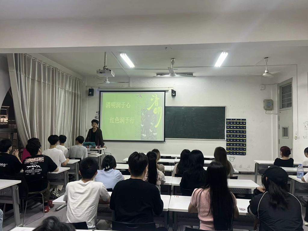 大二各班级以“清明润于心,红色润于行”为主题召开了班会。各班通过班长讲解了有关清明节的PPT,同学们进一步了解到清明节的起源、习俗以及与这个节日有关的食物等内容。此次班会,同学们更加清晰地认识到清明节不仅仅是一个踏青远足、亲近自然的春季仪式,也是人们扫墓祭祖的肃穆的日子。在这个节日里,我们更应该铭记那些为了国家和人民利益而英勇牺牲的英烈们。