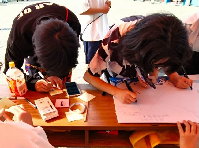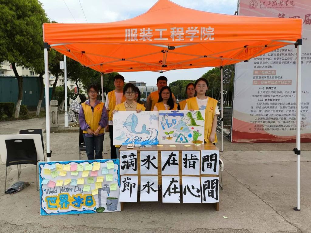活动前期,确保活动的顺利进行志愿者们精心为活动准备了系列道具,如贴纸、画笔、白板等。此外,他们采用了书法的形式展现本次活动的主题,以便吸引更多同学的注意,让更多的同学了解保护水资源的重要性,从而提高大家的节水意识。