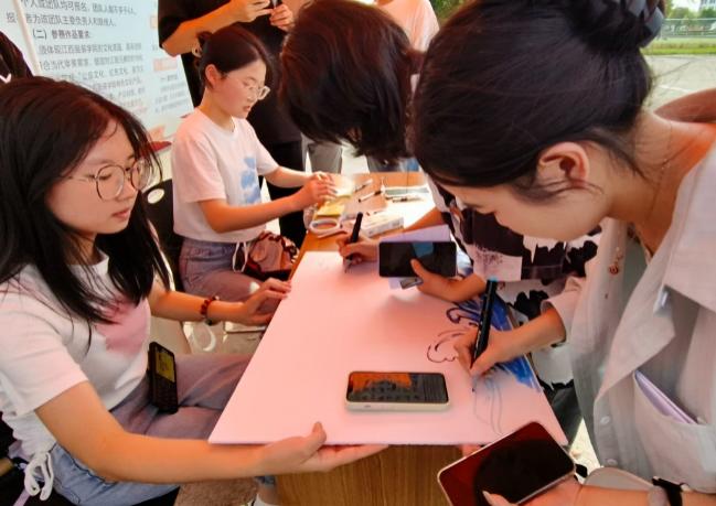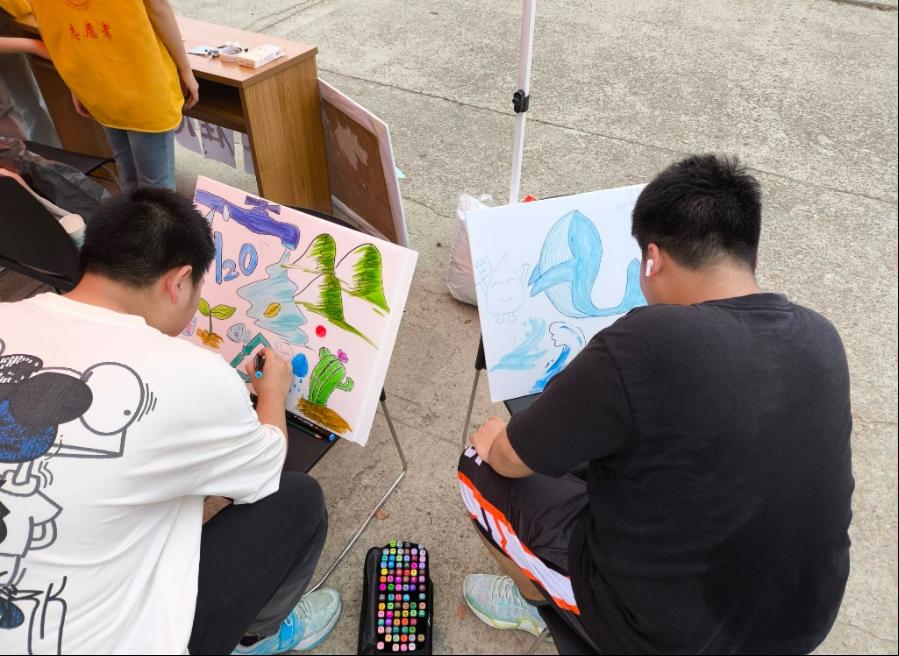 活动刚开始,便吸引了许多同学纷纷参与到活动中。有的在贴纸上写关于节水的短句,有的在白板上创作关于节水的图画。他们以画笔为媒介,将节水理念融入每一幅作品中,通过接力创作的形式展现出水资源的珍贵与节约的重要性。这种创新的方式不仅让同学们在艺术创作中感受到了乐趣,也让他们在互动中加深了对节水活动的理解和认识。