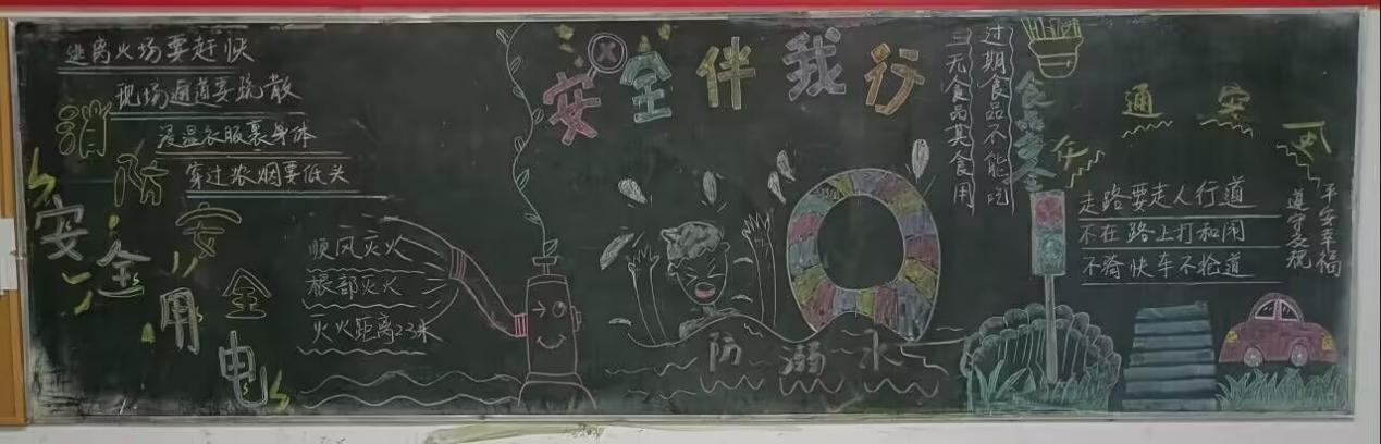 本次主题黑板报创作的内容涵盖了交通安全、防火防盗、网络安全、食品卫生安全等多个方面,旨在全方位提升大员工的安全防范意识。有些班级刊出的黑板报通过生动的漫画形式,展示了在日常生活中可能遇到的安全隐患及应对措施,既有趣又实用。