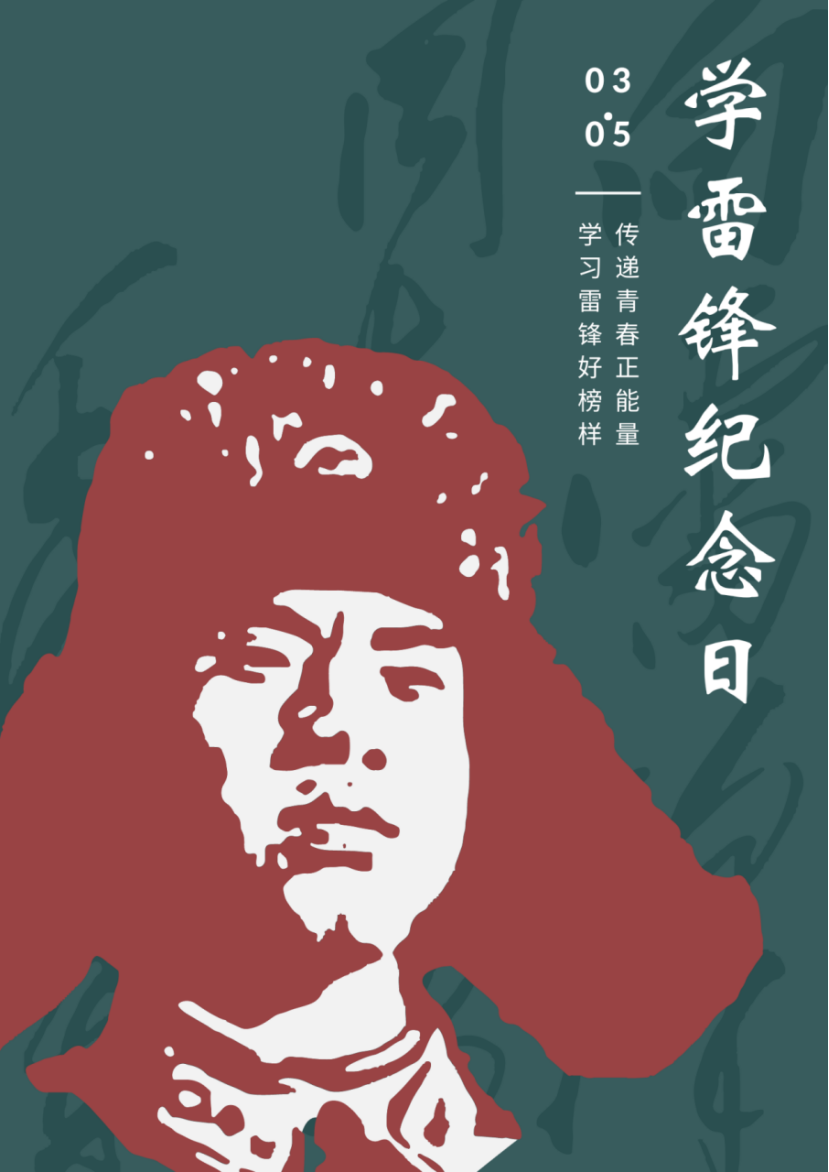 同学们纷纷用画笔记录下学习雷锋精神的所见所闻,以海报的形式呈现出来贺诗涵同学的作品设计灵感来源于雷锋的精神,背景以毛泽东同志笔记为设计灵感,选择雷锋同志的头像突出海报主题,右上角文字清楚表达海报内容,同时写出主题和时间等关键信息。传递出“学习雷锋好榜样 传递青春正能量”的宣传思想。宣扬雷锋精神,让新时代老员工积极传承和弘扬中华传统美德,学习雷锋精神争做好人好事为社会奉献自己的一份力量。