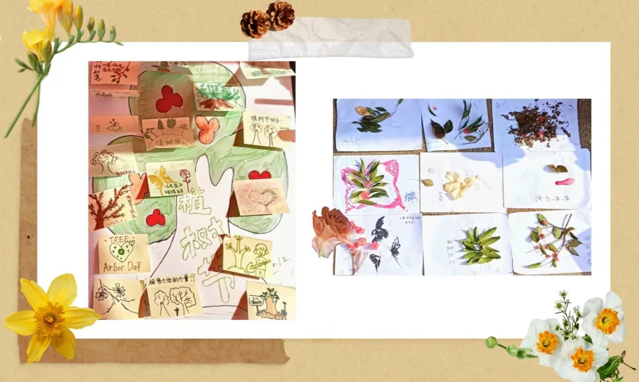 活动现场还准备了画有大树图案的纸板,上面贴满了同学们自绘的祝福贴纸,同学们纷纷表达了对植树节活动的喜爱以及对保护环境的关注。