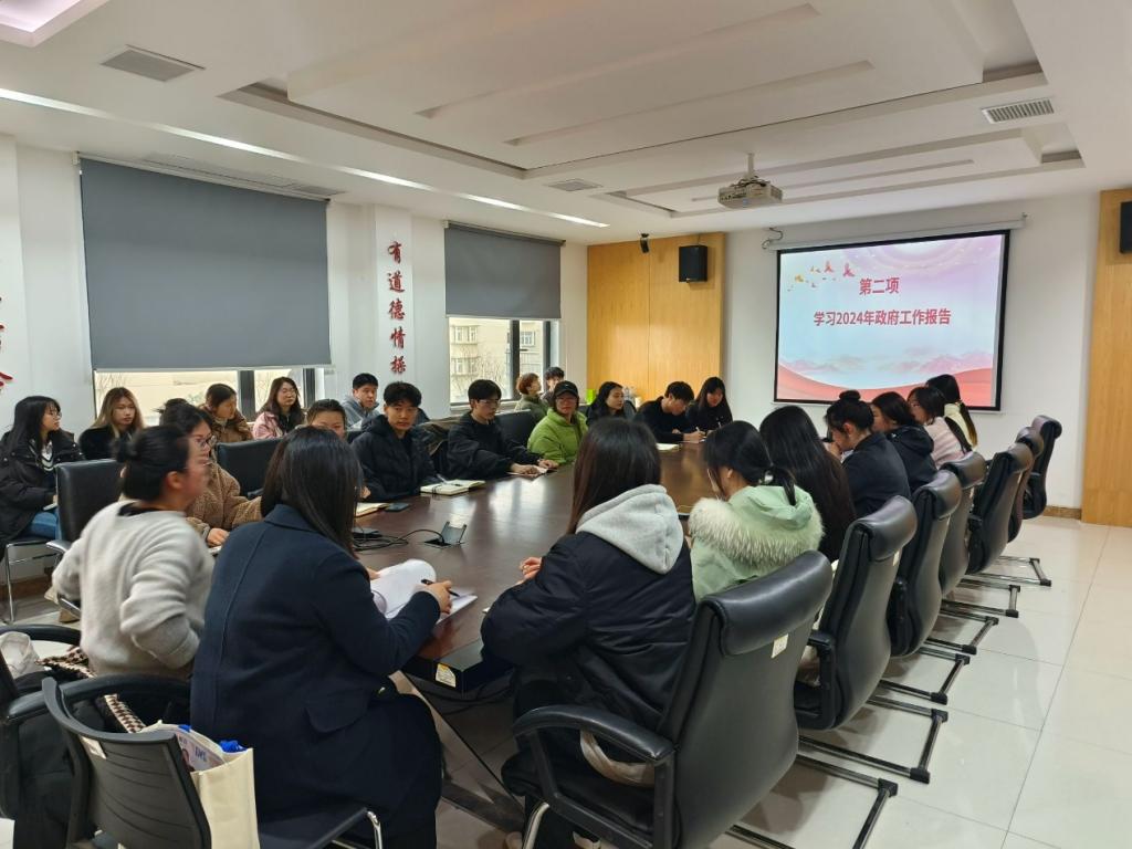 会议第二项,分团委书记洪婷领学《政府工作报告》和《2024年共青团工作要点》。洪婷表示,共青团作为党的助手和后备军,在新时代肩负着更加重要的使命我们要始终坚持党的领导,抓牢共青团工作要点,确保共青团工作的正确方向争取新学期的共青团工作再上新台阶。