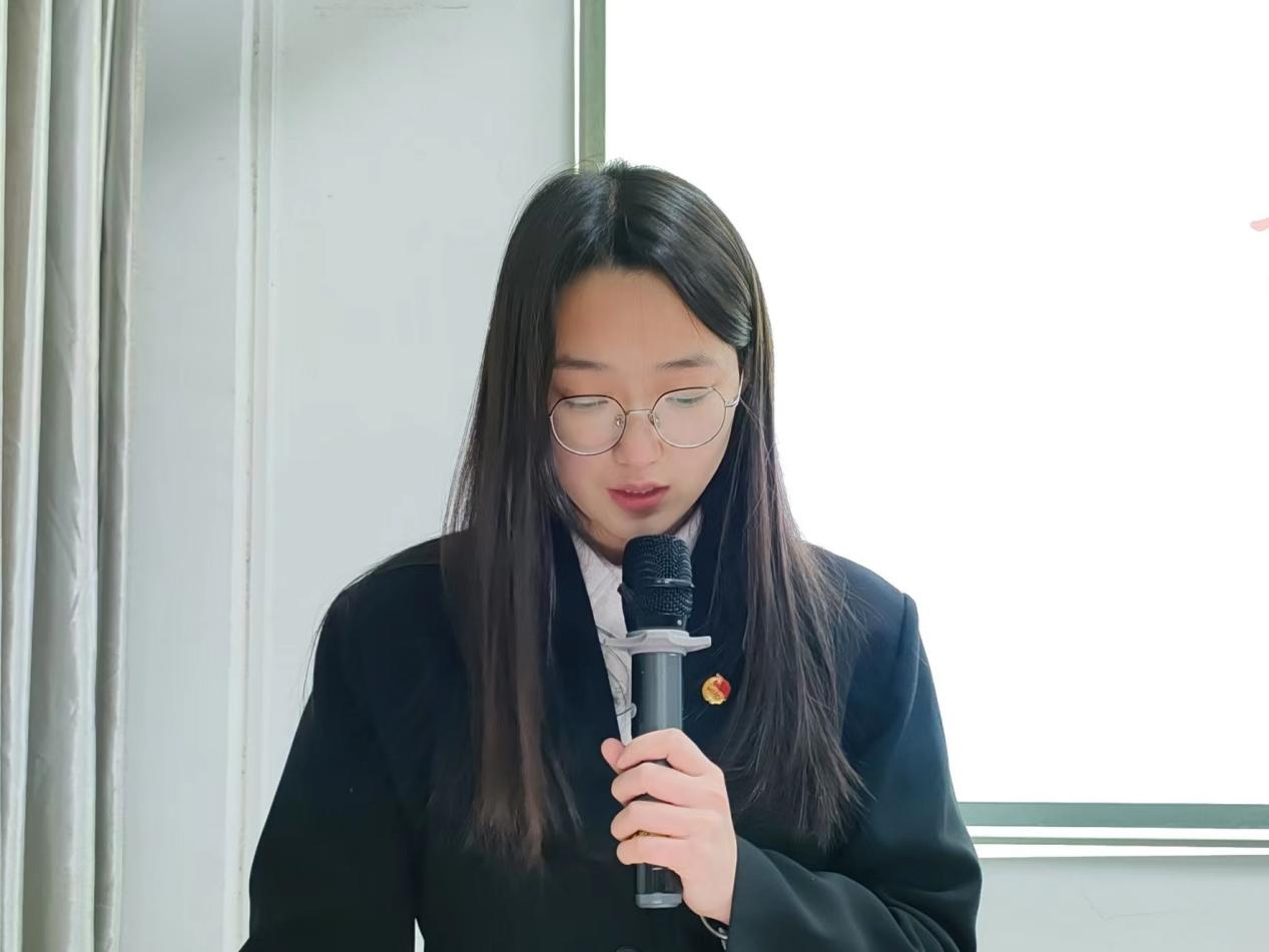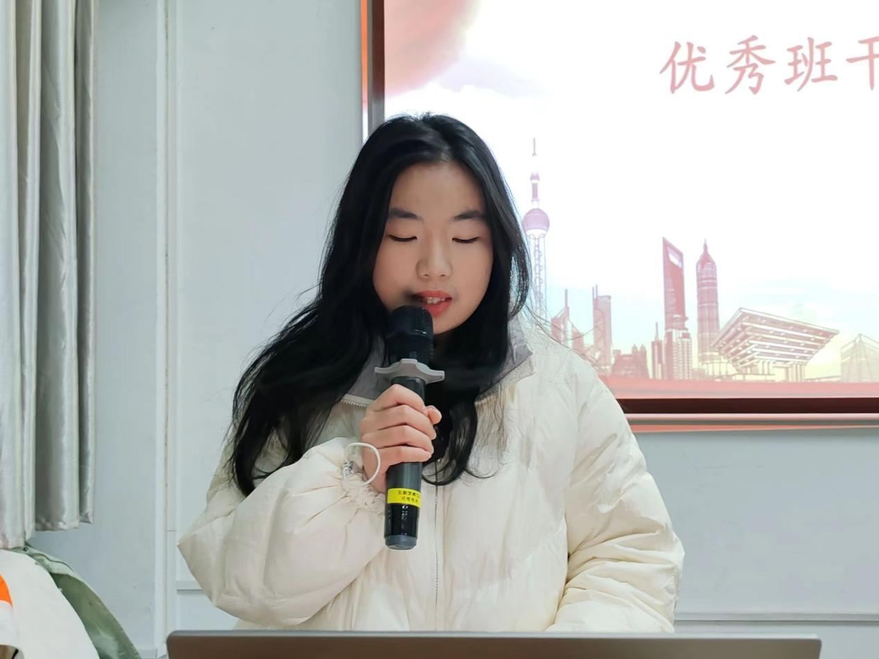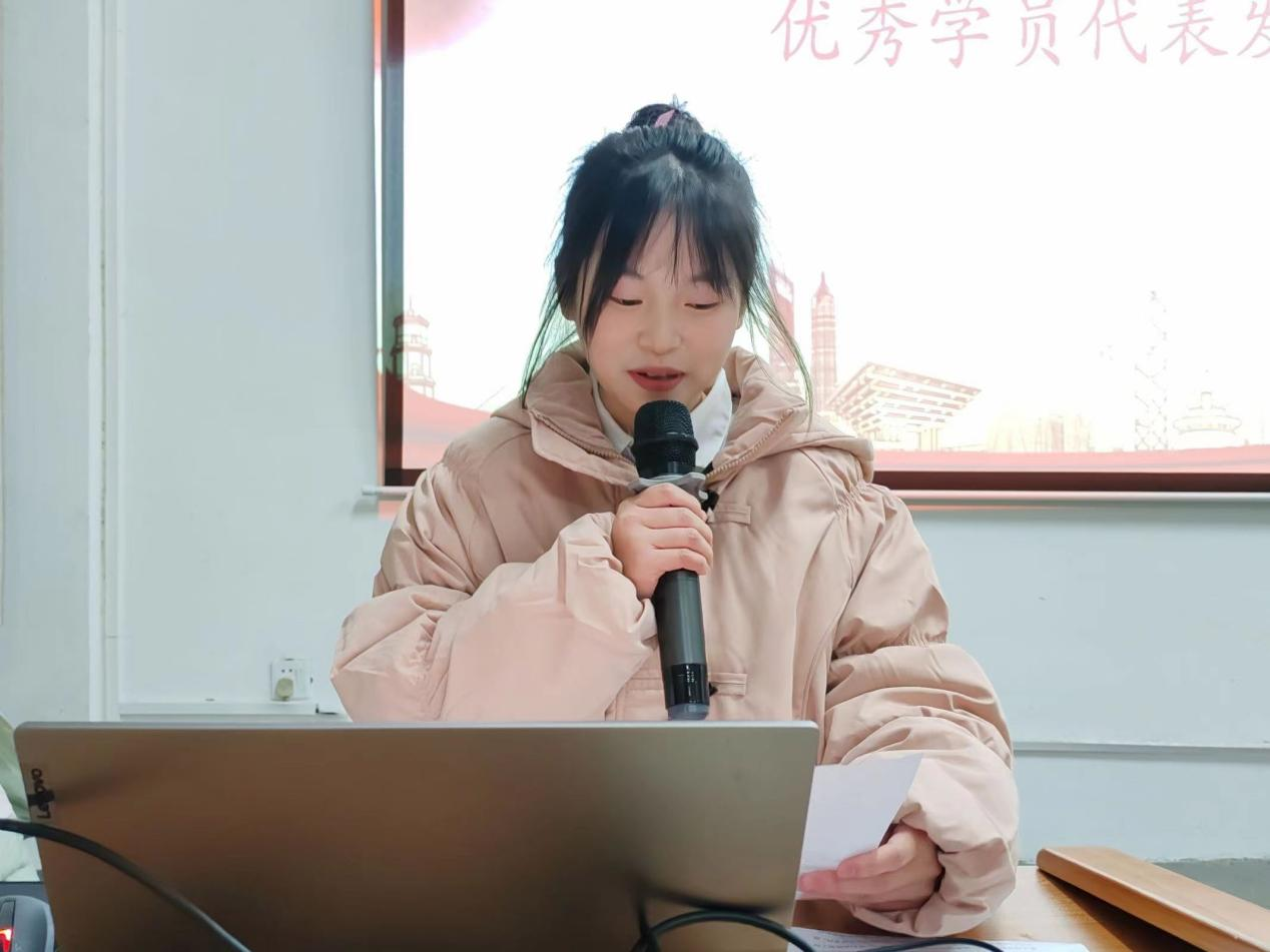 仪式第四项,由班干代表张欣怡上台发言。张欣怡表示,此次培训受益匪浅,不仅提高了自己的理论水平和实践能力,还增强了团队合作精神和社会责任感,为今后做好老师与同学之间的沟通桥梁打下了基础,作为培训班学员要起到模范带头作用,做有担当的青年马克思主义践行者,为祖国的建设奉献自己的青春力量。