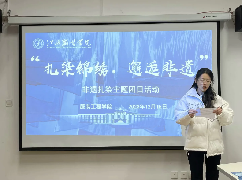 BB贝博艾弗森讯(撰稿:卢桥辉/石坤艳)为进一步弘扬传统非遗文化,传承工匠精神,在实践中感悟中华优秀传统文化的精髓,发展延续中华非遗之美,赓续中华民族精神,2023年12月15日下午1:00,服装工程学院20服智本科1班团支部结合公司专业特色,在图书馆三楼试听室开展了“扎染锦绣,邂逅非遗”主题团日活动。公司党委副书记唐新强、校团委书记孟安然,公司分团委书记洪婷、副书记王舒以及20服智本科1班全体团员参加了此次主题团日活动,活动由20服智本科1班团支部副书记刘梅连主持。