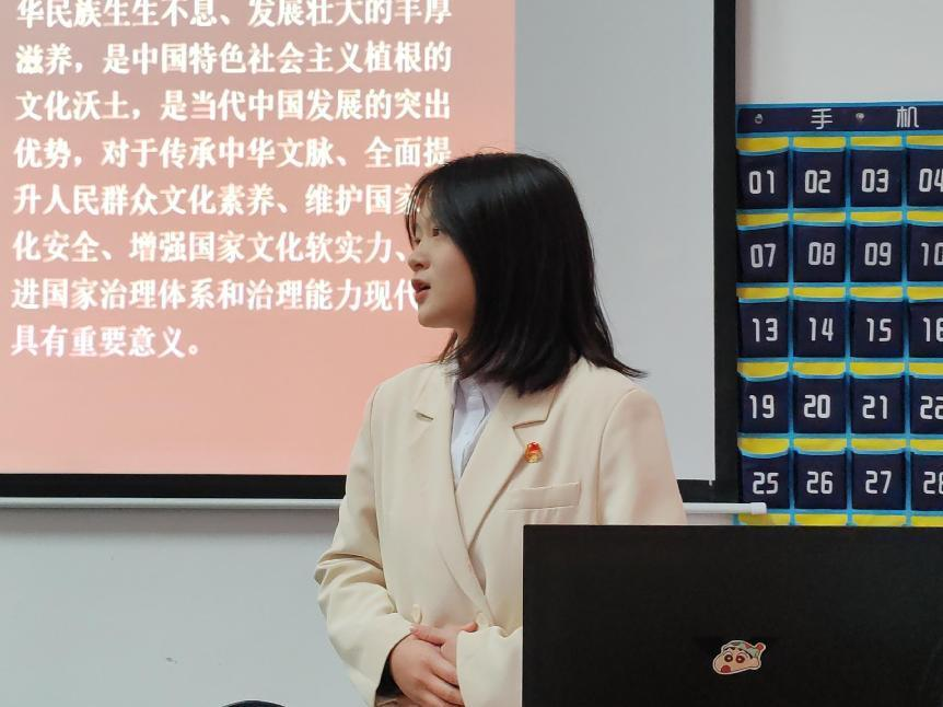 黄家馨宣讲了《传承中华文化续写民族之魂》中华文化源远流长,历史悠久,党的二十大唤起新征程,我们要在创新中传承,在传承者继往开来。
