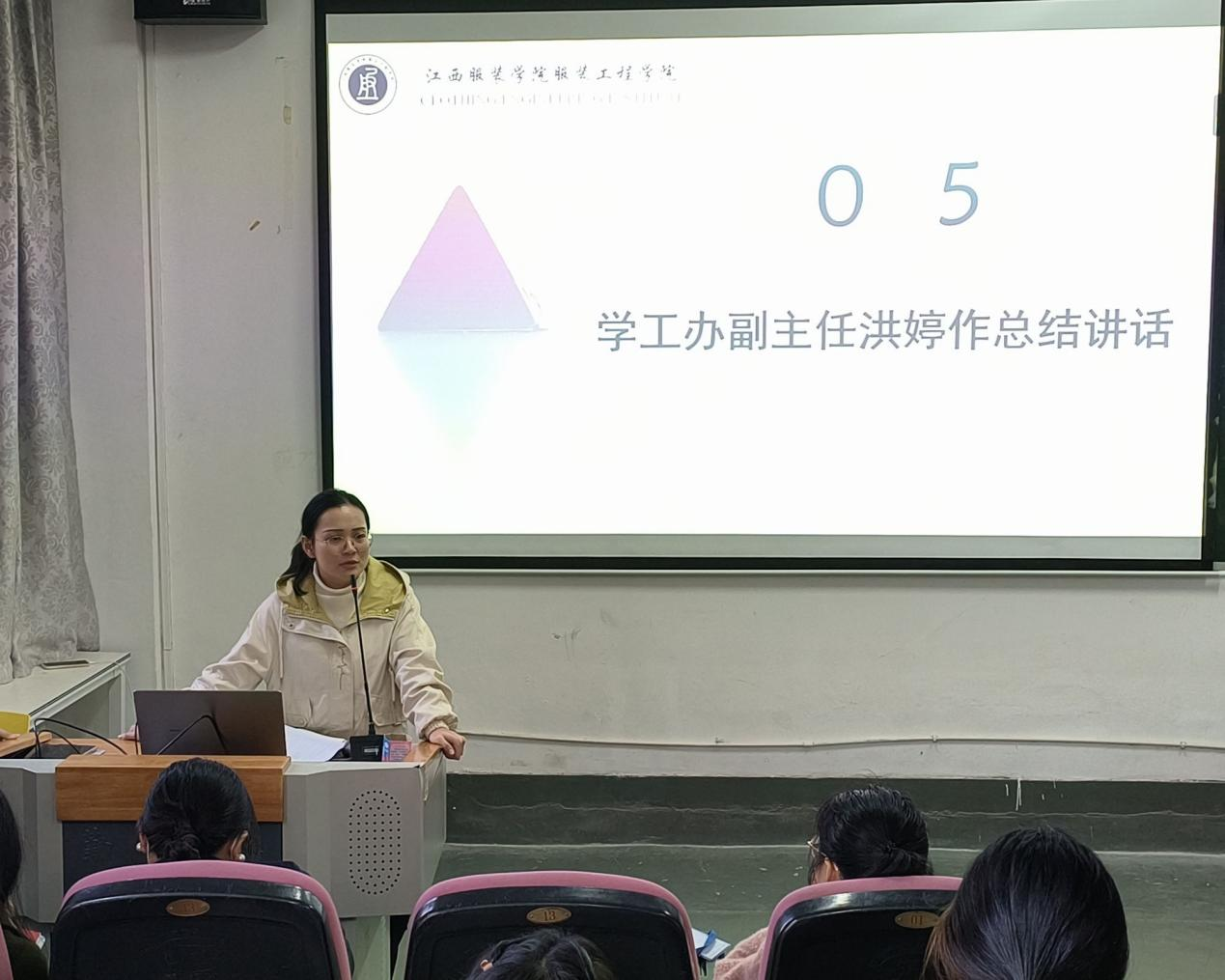 会议最后,洪婷作总结讲话。她强调不同的班委角色有着不同的工作职责,但班委作为班级的管理者,要发挥好带头作用,及时反馈同学们的所思、所想、所做,更好为班级员工服务,积极配合班主任管理班级,共同推动班级发展。