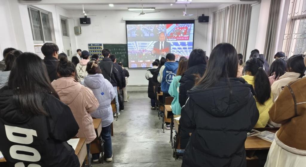 随后,师生们跟随主会场齐唱《宪法伴我们成长》,大家共同观看了第八届员工“学宪法、讲宪法”活动全国总决赛优秀选手的演讲展演,深刻理解贯彻宪法精神的重大意义,感受宪法的重要作用,以法制学习培养法治思维。