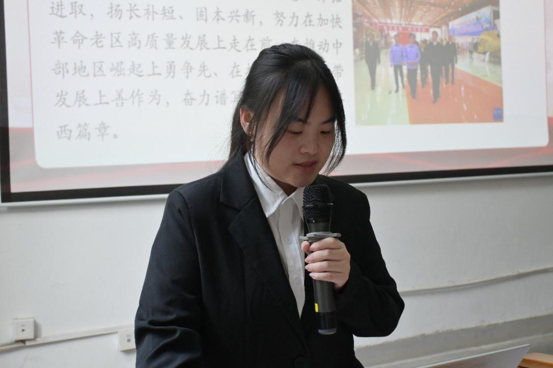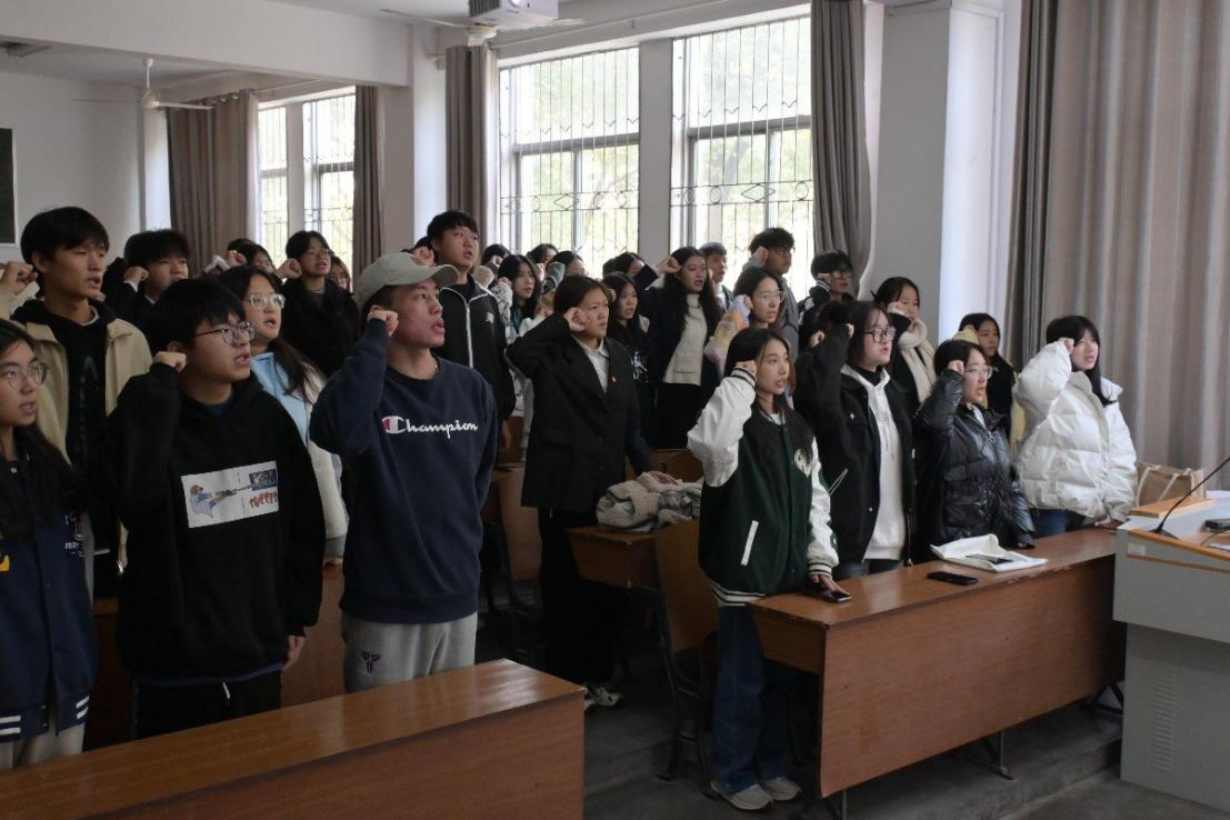 活动第二项,由分团委副书记蒲悦领学习近平总书记考察江西时的重要讲话。蒲悦表示,新时代的中国青年,要以实现中华民族的伟大复兴为己任,要勇于迎难而上,要积极融入到国家建设中去,在实现中国梦的征途上勇往直前。随后,她带领全体人员重温了入团誓言。
