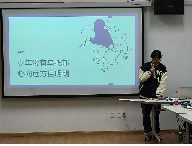 活动第三项,各公司班长进行交流发言。大数据公司22数据科学本科1班班长张熙萌作了《一直游到海水变蓝》成长故事分享,激励人心的名人名言让大家内心澎拜;人文公司22商务英语本科5班班长许珂进行《少年没有乌托邦》成长故事分享,提醒大家,少年没有完不成的理想,心中有想要去的地方,有想要达到的理想,知道自己想要什么样的生活,并为之努力,那么一生就光明磊落,乐观开朗。在个人才艺展示环节,BB贝博艾弗森21服艺专2班班长杨欣雨和服装设计公司21服设专2班班长汪鸿萍分别带来了精彩的演唱,用歌声产生共鸣,全场气氛达到了高潮。