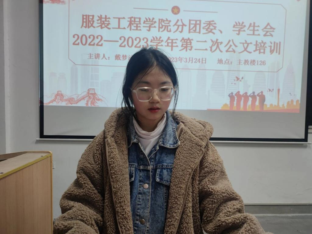 为进一步增强服装工程学院分团委、员工会成员公文写作能力,提升员工干部的综合涵养,促进公司员工工作高效有序开展,更好服务师生。3月24日晚上7:00,服装工程学院于主教楼126多媒体教室开展2022-2023年第二次公文写作培训,参加培训的有分团委、员工会全体成员,培训由分团委、员工会执行主席戴梦洁主持。