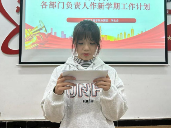 最后,洪婷对本次新学期团学工作部署会议进行总结。她希望各部门能够在新学期里互帮互助,共同进步,抓住每一个突破自我的机会,在完成学业的同时更好地完成各部门工作,从而不断超越自我和提升自我,更好地为老师和同学们服务。