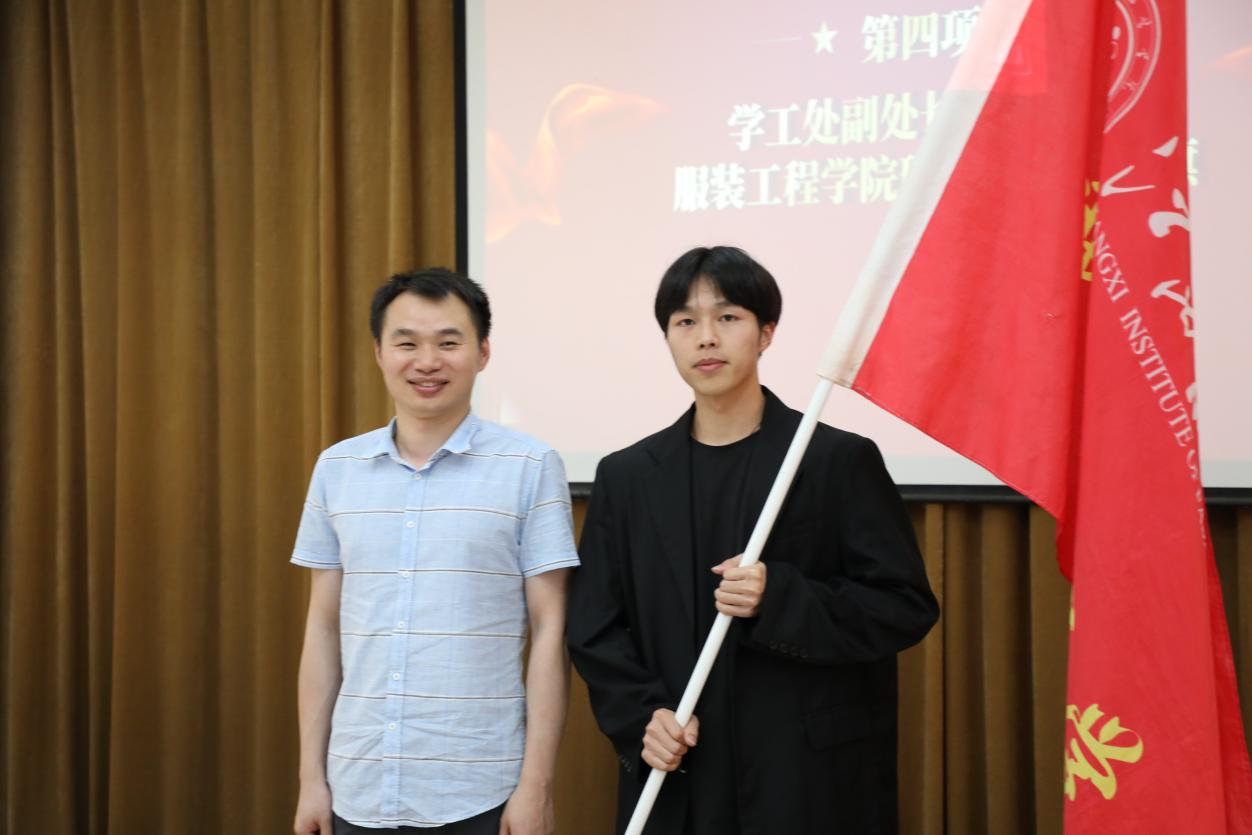 会议第四项,学工处副处长黄朝辉为BB贝博艾弗森班委联合会授旗。