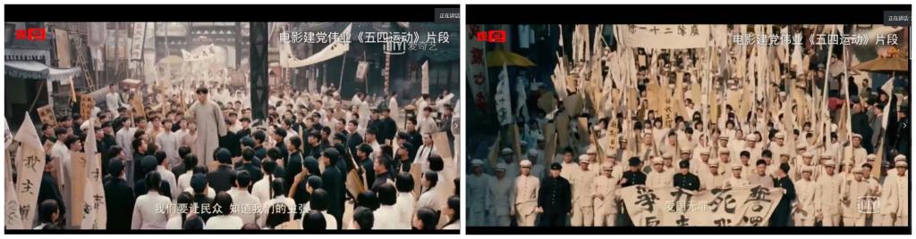 在对于“五四”有了进一步的理解后,我们怀揣对“五四”精神的崇高敬意,一起观看了电影建党伟业的《五四运动》片段。