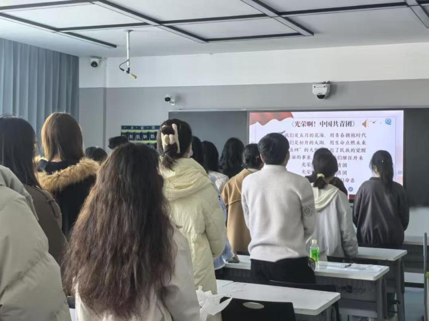 活动第一项,全体同学起立,奏唱《光荣啊,中国共青团》。