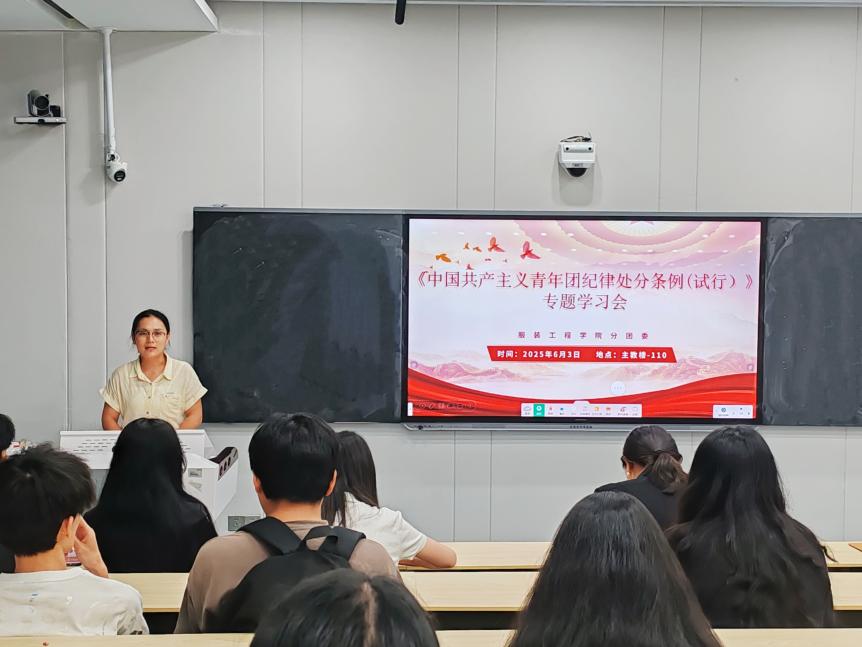 会上,洪婷围绕共青团中央发布的《中国共产主义青年团纪律处分条例(试行)》(以下简称《条例》),结合团的纪律建设要求,从条例制定背景、纪律处分种类、运用规则及违规违纪情形等维度,进行系统讲解。洪婷强调:团的纪律是团员行为的基本遵循,关乎团的先进性与纯洁性,团员需以更高标准严守纪律,在专业学习与团务实践中,彰显青春担当。