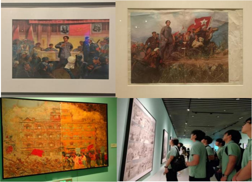 上午,在江西省美术馆浓厚的艺术氛围里,团队沉浸于高水平的主旋律艺术世界里。面对一幅幅承载着峥嵘岁月的画作,队员们或凝神静观,或低声交流感悟,或用心记录细节。革命历史的壮阔篇章通过艺术家的匠心呈现,不仅深化了队员们对红色精神内涵的理解,更激发了大家强烈的创作冲动。队员们深切感受到,美术馆之行是一次生动的创作启迪课,为激发红色作品创作灵感与探索艺术形式创新,提供了丰富的视觉素材与形式参考。