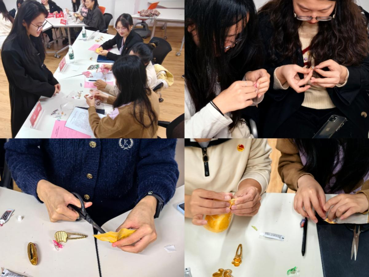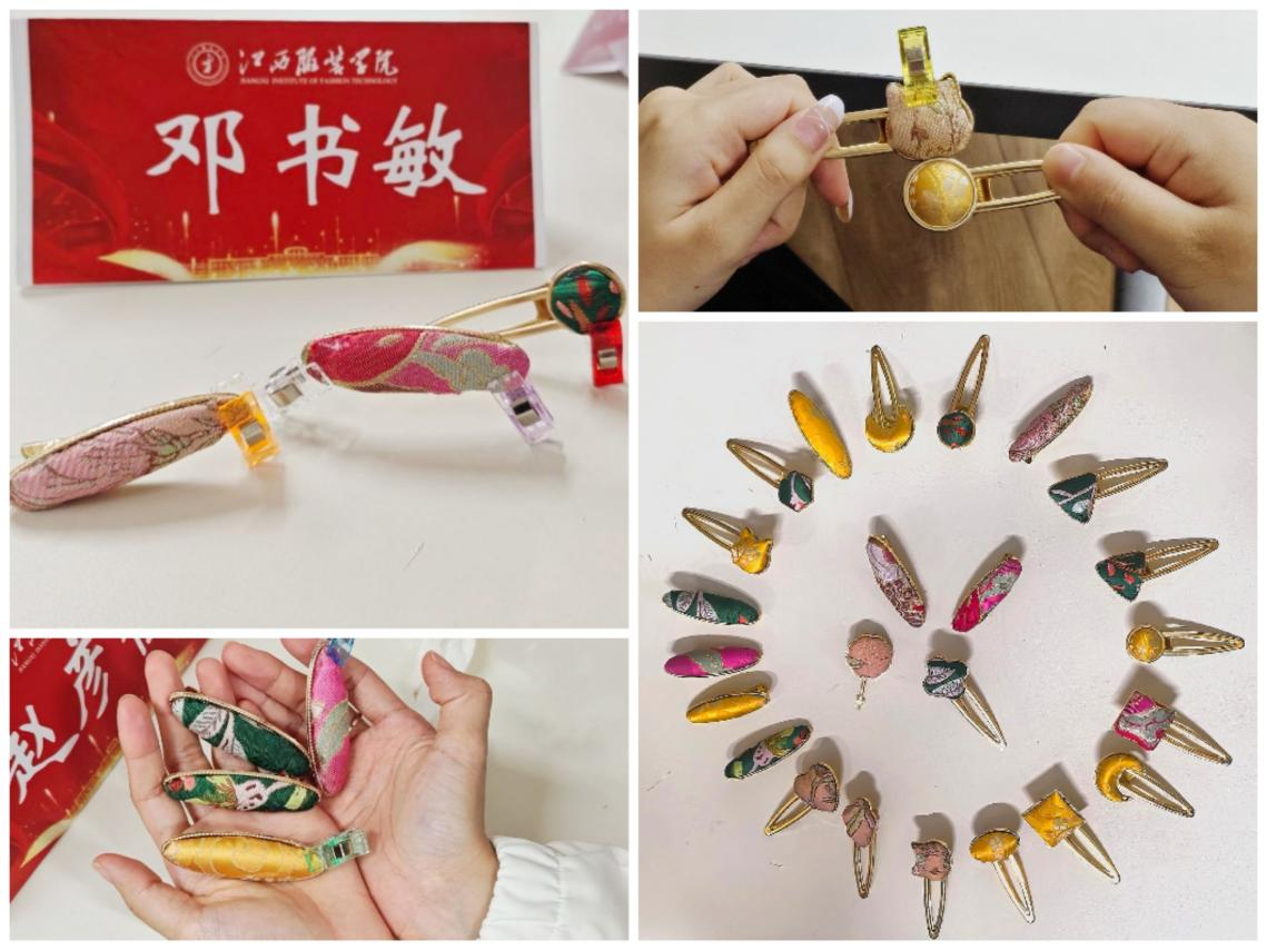 实践结束后,大家分享了自己的感悟。李优谈到:“从裁剪锦缎到粘贴模具,每一步都藏着讲究。看着宋锦变成日常发卡,突然明白非遗从不是遥不可及的符号,而是能随发丝晃动的温柔风景。”邓书敏则表示:“作为服装设计与工程专业员工,这次活动让我懂得了文化自信不是空洞的口号——用专业视角为千年技艺注入新活力,让非遗点亮生活,就是我们传承文化的最好方式。”