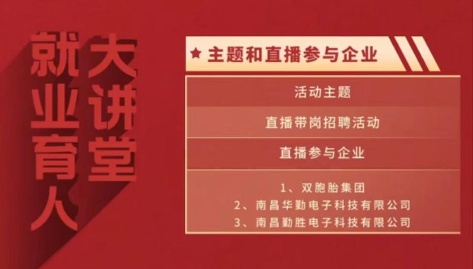本次直播课由江西省教育厅主办,江西省教育评估监测研究院协办,邀请了双胞胎集团、南昌华勤电子科技有限公司、南昌勤胜电子科技有限公司三家企业进行直播带岗活动,开启了直播课招聘新模式。