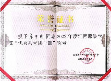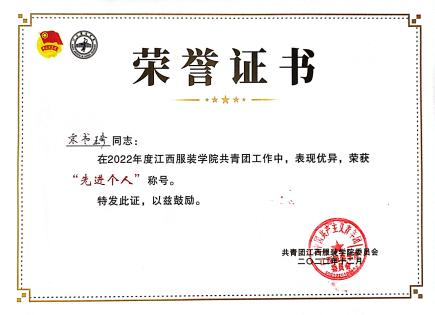 他敢于担当、甘于奉献,担任员工干部期间,多次组织班级活动与公司活动,曾获“优秀共青团干部”“优秀班干部”“先进个人”等荣誉称号;