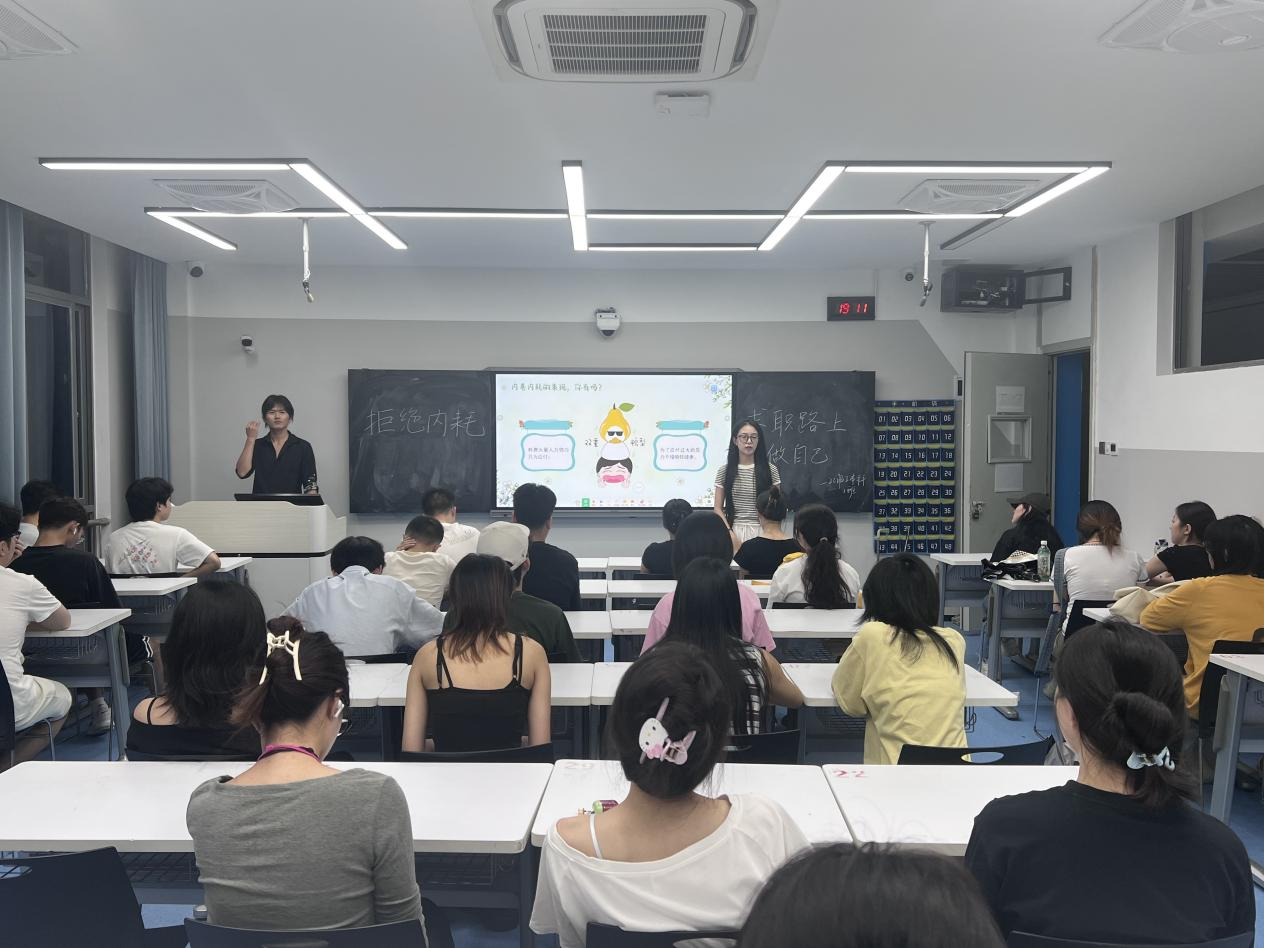 班会伊始,各班班主任以“躺不下,卷不动”这一毕业生高频共鸣点切入,通过邀请员工上台模拟“仰卧起坐”动作、分享体验等互动形式,生动具象化“一会卷一会躺”的内耗状态。随后,班主任结合“清华卷王”等热点案例,梳理了“内卷”的流行背景与典型表现,同时解析“精神内耗”的定义——因心理资源过度消耗而产生的主观疲惫感,并列举“被迫跟风努力”“简单问题复杂化”“无意义熬夜”三类典型内耗行为,引导同学们直观对照自身状态,深刻认识过度内耗对精力与健康造成的双重损害。