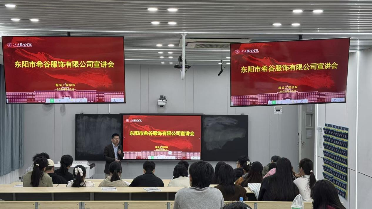 宣讲会现场,东阳希谷服饰有限公司校招负责人详细解读了企业在跨境电商领域的核心竞争力——以“自主设计+全球视野”为根基,在欧美时尚女装赛道快速崛起,成为行业“黑马”。负责人强调,除了岗位职责与发展空间,公司更着重传递一种理念。公司不仅是销售服装,更要以中国设计传递自信优雅的生活态度,重新定义服装时尚,让世界看见中国品牌的力量。负责人用生动的行业案例与清晰的未来规划,引发了在场学子们的共鸣。