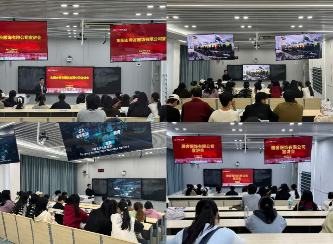 各服装公司校招负责人详细介绍了本公司在服装行业的优势和发展前景。东阳市希谷服饰有限公司作为跨境电商,主打以“自主设计+全球视野”为根基的女装赛道;苏州恒宇布艺整理有限公司聚焦纺织科技,与行业共谋发展;雅舍服饰(金华)有限公司则重点在全流程服务,培育设计新星......负责人们还详细解读了本次校招的岗位要求,特别强调了毕业生需具备的性格特质与工作态度,在薪资待遇方面,公司表示将根据个人工作业绩与能力进行动态调整,以充分保障毕业生的收入水平并激发其职业发展潜力。