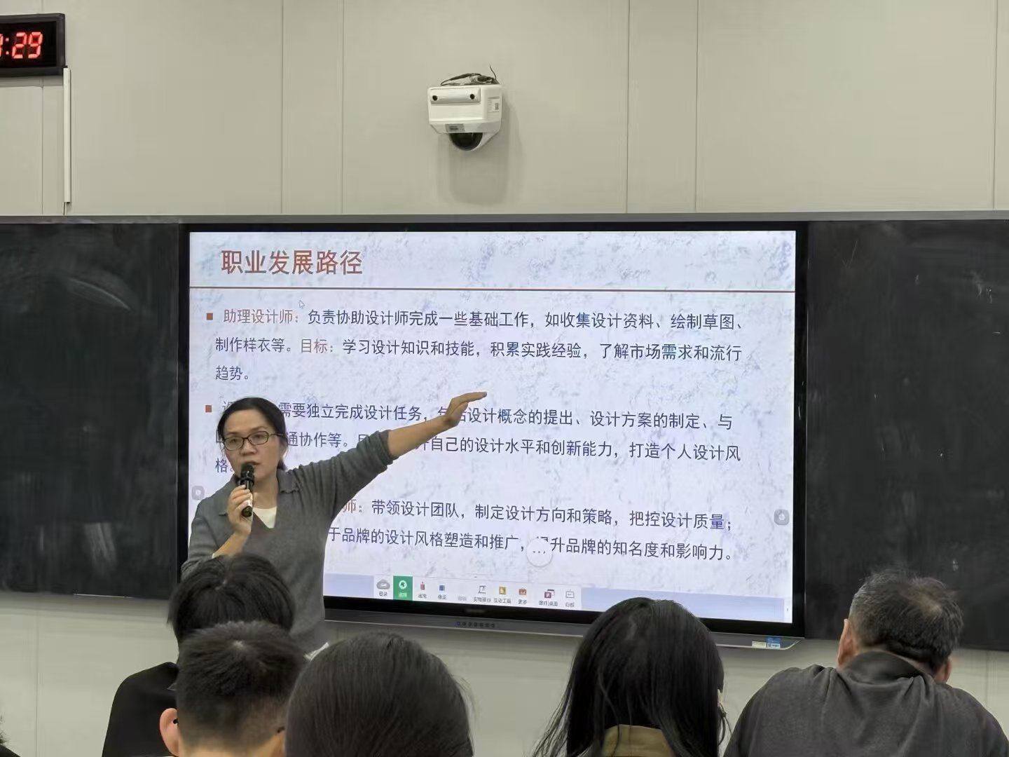 为了帮助同学们进一步了解当前纺织服装行业的就业形势,公司特别邀请了纺织教研室主任左静博士为同学们讲授。左静首先用图谱的形式系统解析了热门行业的就业情况,清晰梳理出纺织服装行业各领域的发展现状、未来趋势及核心人才缺口,帮助同学们把握行业发展脉搏。随后,左静聚焦世界500强及行业标杆企业中的相关优质企业,详细介绍其业务布局、岗位设置、招聘偏好与人才培养体系。同时,左静结合不同的岗位特性,从入门岗位要求、核心能力提升、纵向晋升通道到横向转型方向,全面解析了职业发展路径。通过多维度、具象化的指导,助力同学们明确求职定位,避开择业盲区,科学规划自己的职业道路,为顺利就业及长期职业发展打下基础。