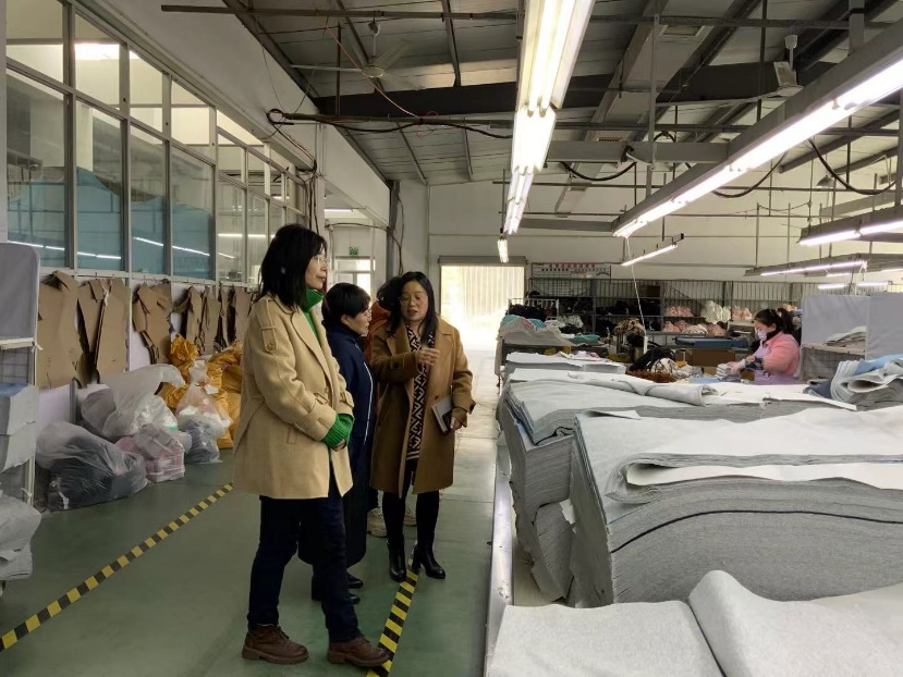 此外,陈娟芬一行参观了企业的生产线和研发中心,参观过程中,大家亲眼目睹了现代化的生产设备和精细化的生产流程,感受到了先进制造技术对服装产业发展的重要推动作用。企业的技术人员详细介绍了自动化生产、智能化管理以及环保材料的应用,大家对当前行业的发展趋势有了更深刻的理解。