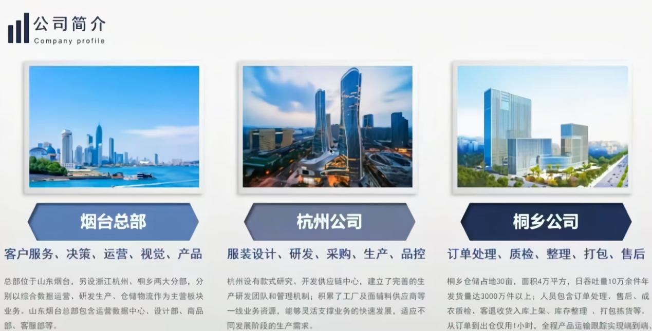 拓森控股集团有限公司,成立于2011年,总部位于山东烟台,是一家集研发、生产、销售为一体的中国著名女装电商企业,集团下设三家主公司,分别是以运营为主的烟台总公司,以研发、生产为主的杭州公司,以仓储、物流为主的桐乡公司,还包括产品研发中心三处、优质合作工厂百余家。拓森控股集团有限公司主营电商女装,旗下有“丝柏舍”“她池”等知名品牌,公司自成立以来,坚持以服装为核心,电子商务为渠道,多元化发展的战略定位。