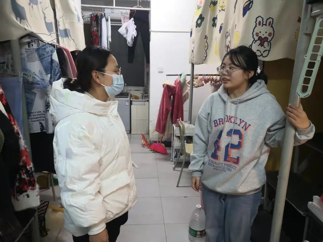 公司党总支书记彭波、学工办副主任洪婷带领全体辅导员走访了员工宿舍,看望返校员工,了解员工返校情况,做到呵护每一位员工。让同学们感到在江服也像在家一般温暖。