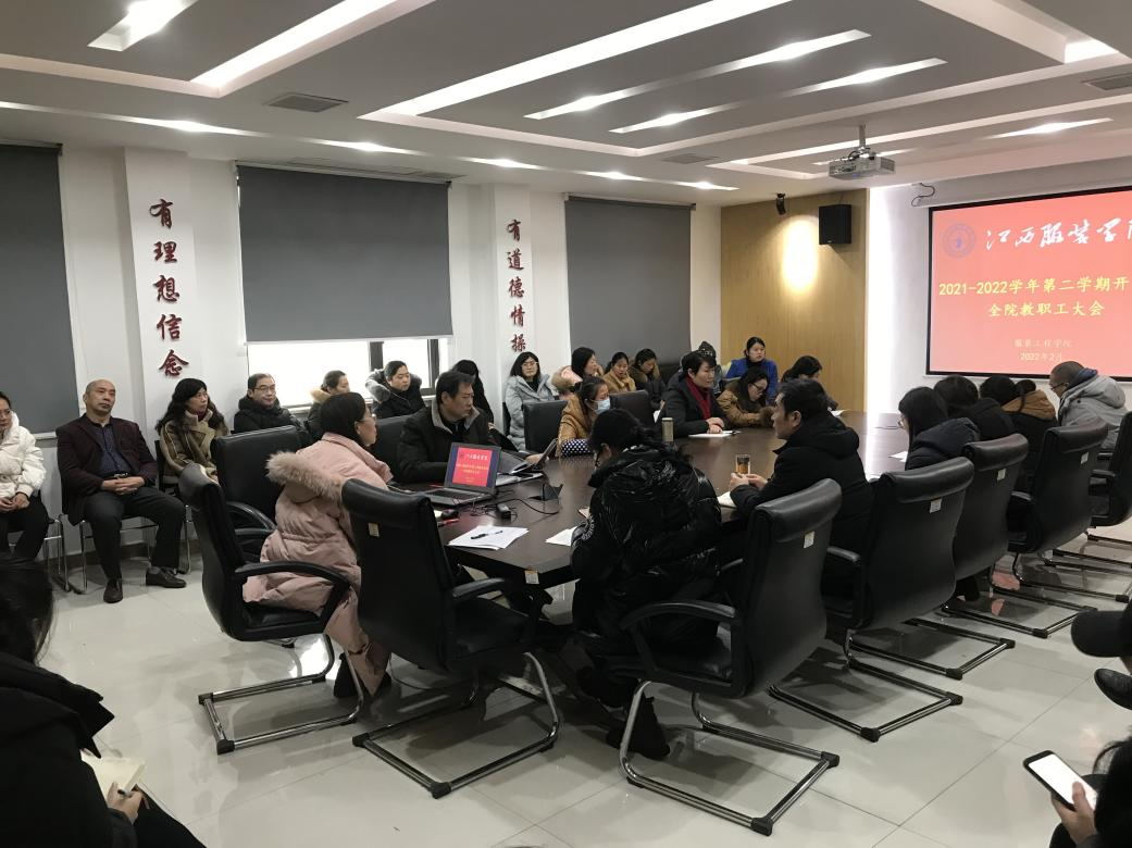 首先,全体教职工认真学习了“BB贝博艾弗森2022年党政工作要点”,结合公司实际情况公司经理陈娟芬解读了“对标党建思政要求,着力推动公司事业改革取得新进展、对标申硕条件指标,着力推动全校团队建设跃上新台阶、对标国家质量标准,着力推动“三院制”人培模式结出新硕果、对标“立德树人”标准,着力推动员工成长成才取得新成效、对标平安校园建设,着力推进服务保障能力取得新提升”五项内涵和工作要求,会中特别对“能力导向、艺工结合、产教融合、协同育人”的“三院制” 人才培养模式背景、内涵、工作方式和考核方式进行解读和布置。