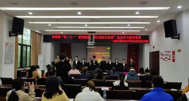 在书记的推动作用下,党史宣讲团同公司暑期“三下乡”队伍一同走进社区,此举得到了良好的社会反响。从受邀前往向塘镇开展党史宣讲、到全员走进21级新生进行党史宣讲、再到联合艾溪湖湖槟社区举办党史宣讲。党史宣讲团这一路走来很艰难,从最初包括书记在内的8人,发展到现在20多人,是书记的精心挑选、把关、策划、带领,才有了今天富有强大生命力的党史宣讲团。