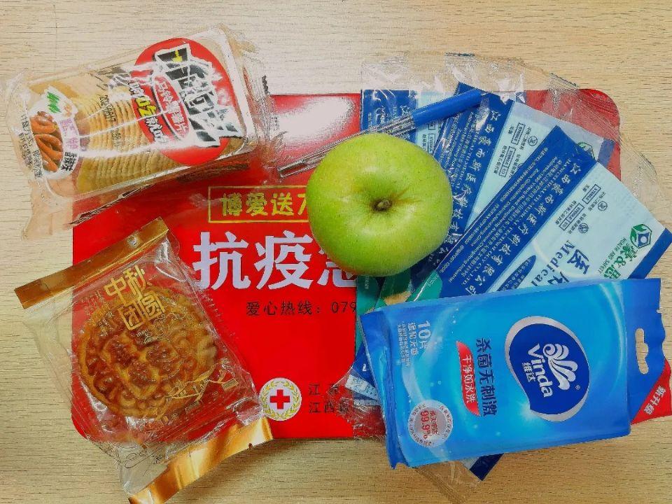 每份爱心防疫礼包中不仅有一次性防护口罩、消毒纸巾、温度计等防疫物品,还有月饼、水果等食品,体现了公司对服工学子们特别的“宠爱”。恰逢中秋佳节,让隔离的同学们足不出门也能品味到中华传统美食,感受